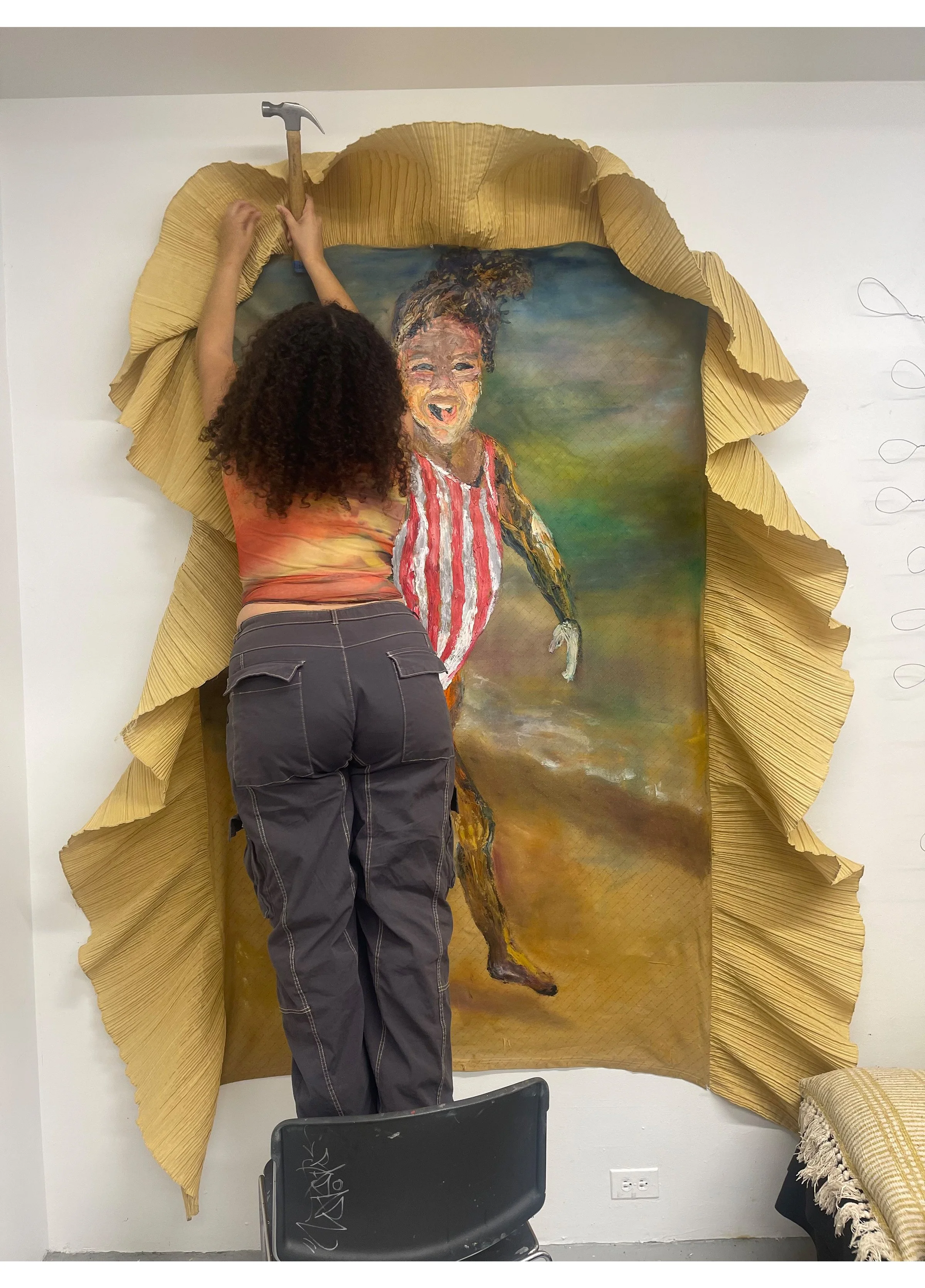 My work is driven by feelings of rootlessness, being American born and Caribbean raised. Growing up in New York and navigating culture, visual signifiers of home, and familial memories, I find myself in a similar position as many others: a product of a fragmented identity and the diaspora. I am discovering more about my identity through tracing remnants of my family's past. My work consists of paintings, drawings, photographs, ornate objects, metal, wood, and thrifted fabrics relating to home. Piecing together these different objects and materials initiates a way to talk both with my familial past, and the larger structures that have had influence on that past.